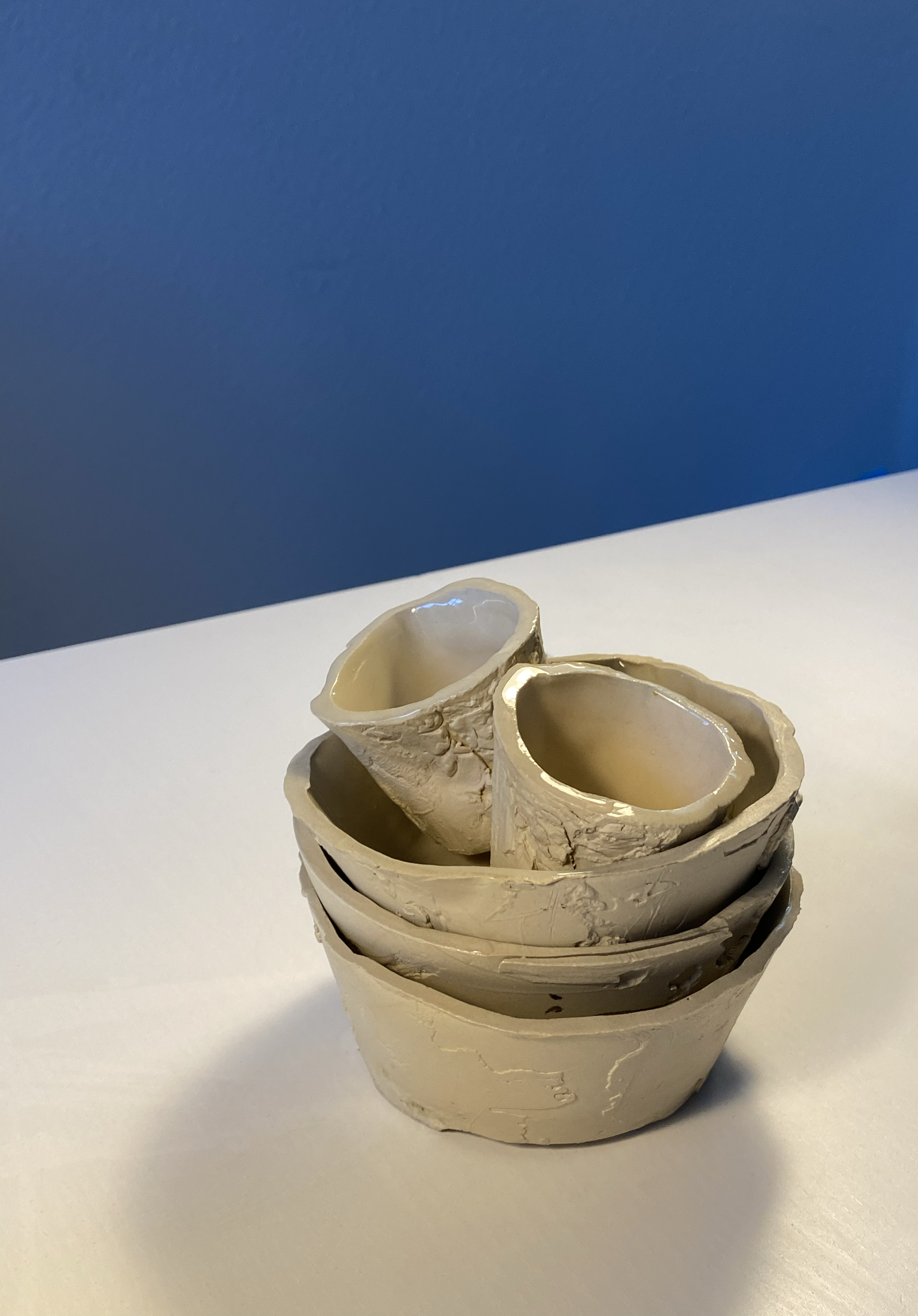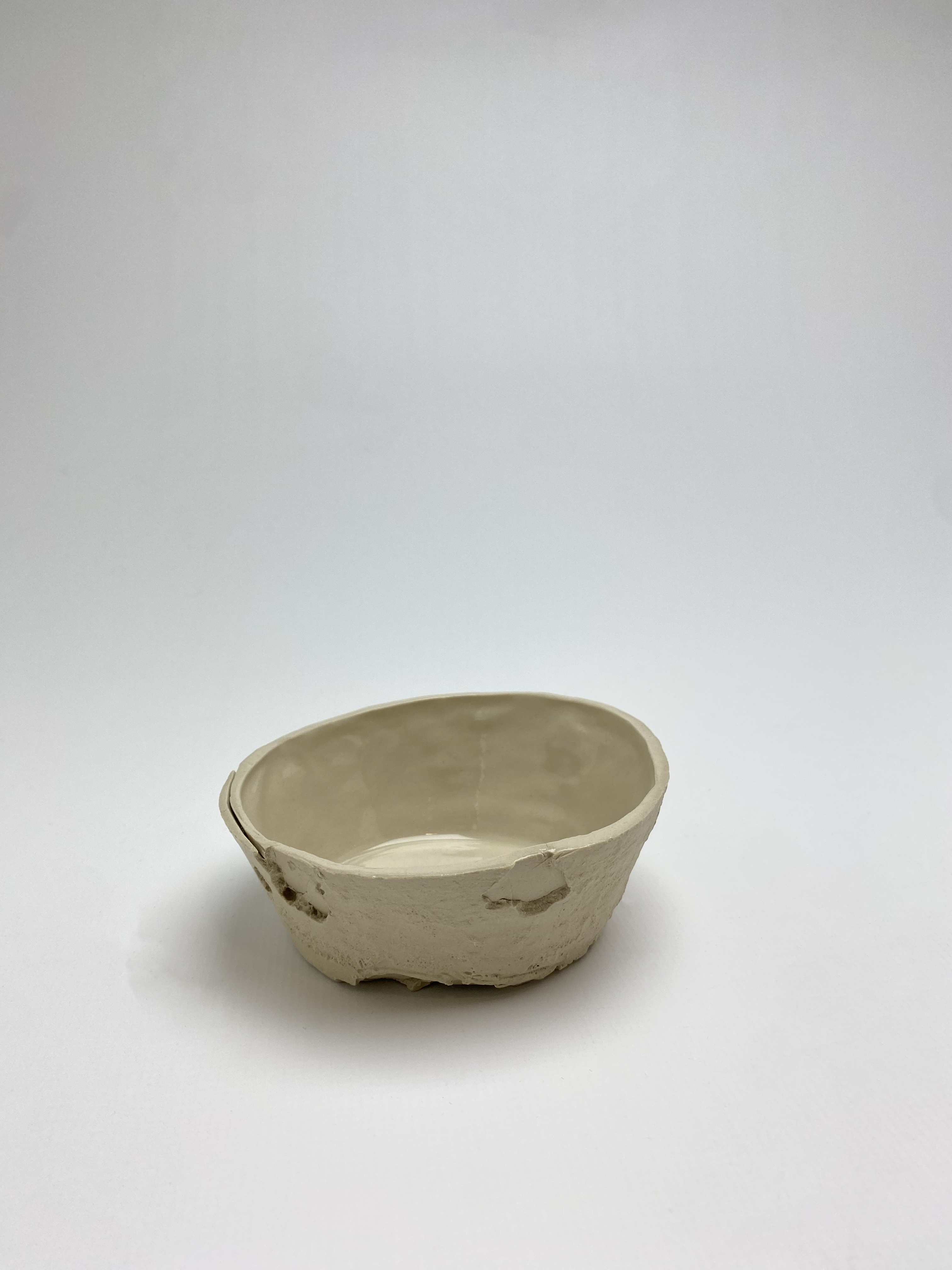 Topography Moulds presents an ensemble comprised of two distinct bowl models and a single cup, orchestrating a juxtaposition between textured exteriors and smooth interiors. Crafted utilizing a layered plaster mould, which imparts relief to the composition, this collection manipulates the delicate balance of extracting the model from the mould at the opportune juncture – a fine equilibrium between structural rigidity and suppleness, crucial for preserving intricate details.
